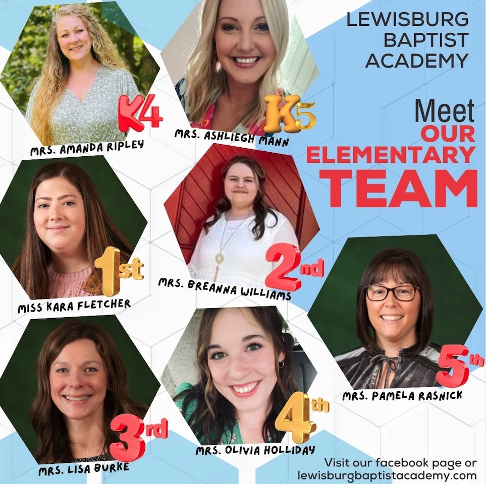 Since 2004, Lewisburg Baptist Academy has been fulfilling its purpose to educate students to thrive in every aspect of life. We are dedicated to helping each child achieve his or her God-given potential scholastically, socially, and spiritually. We strive to be a school that is 100% Christian in its core and values, as well as focusing on 100% academic excellence. We feel this is true CHRISTIAN EDUCATION.