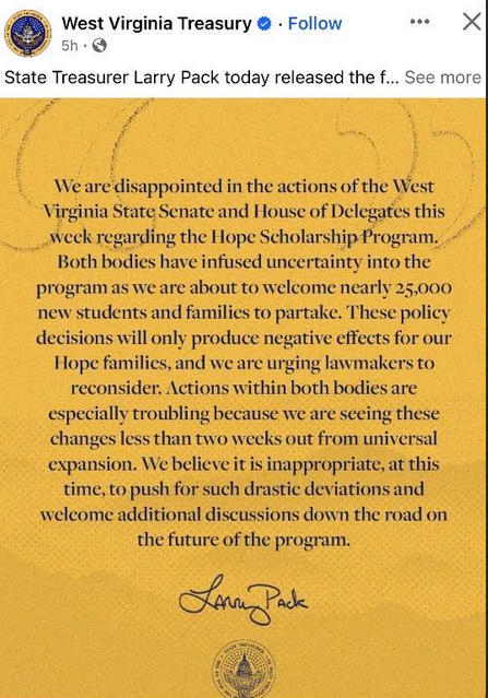 We expect this fight to intensify. Here are the emails of our WV legislators: