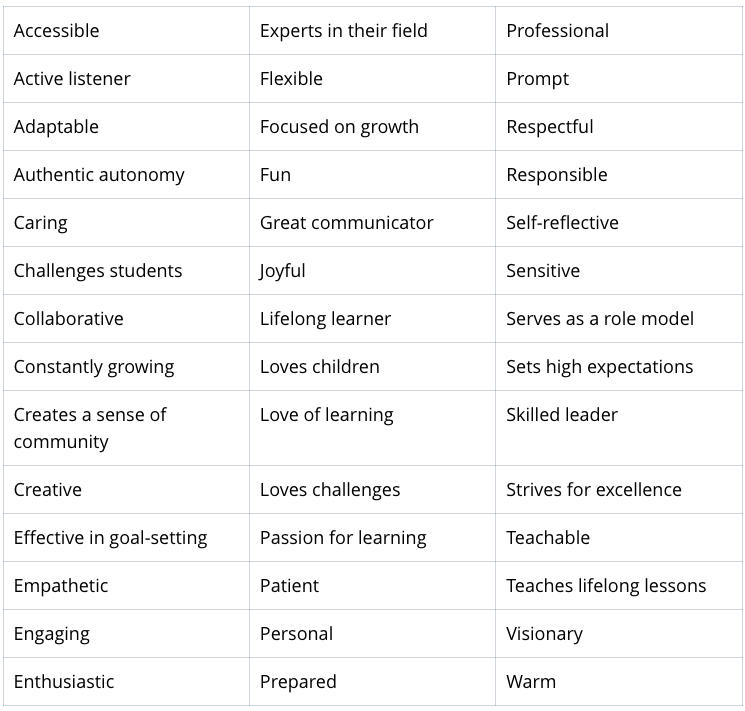 If you search the internet for the “most important traits of a great teacher,” several other vital attributes emerge.
